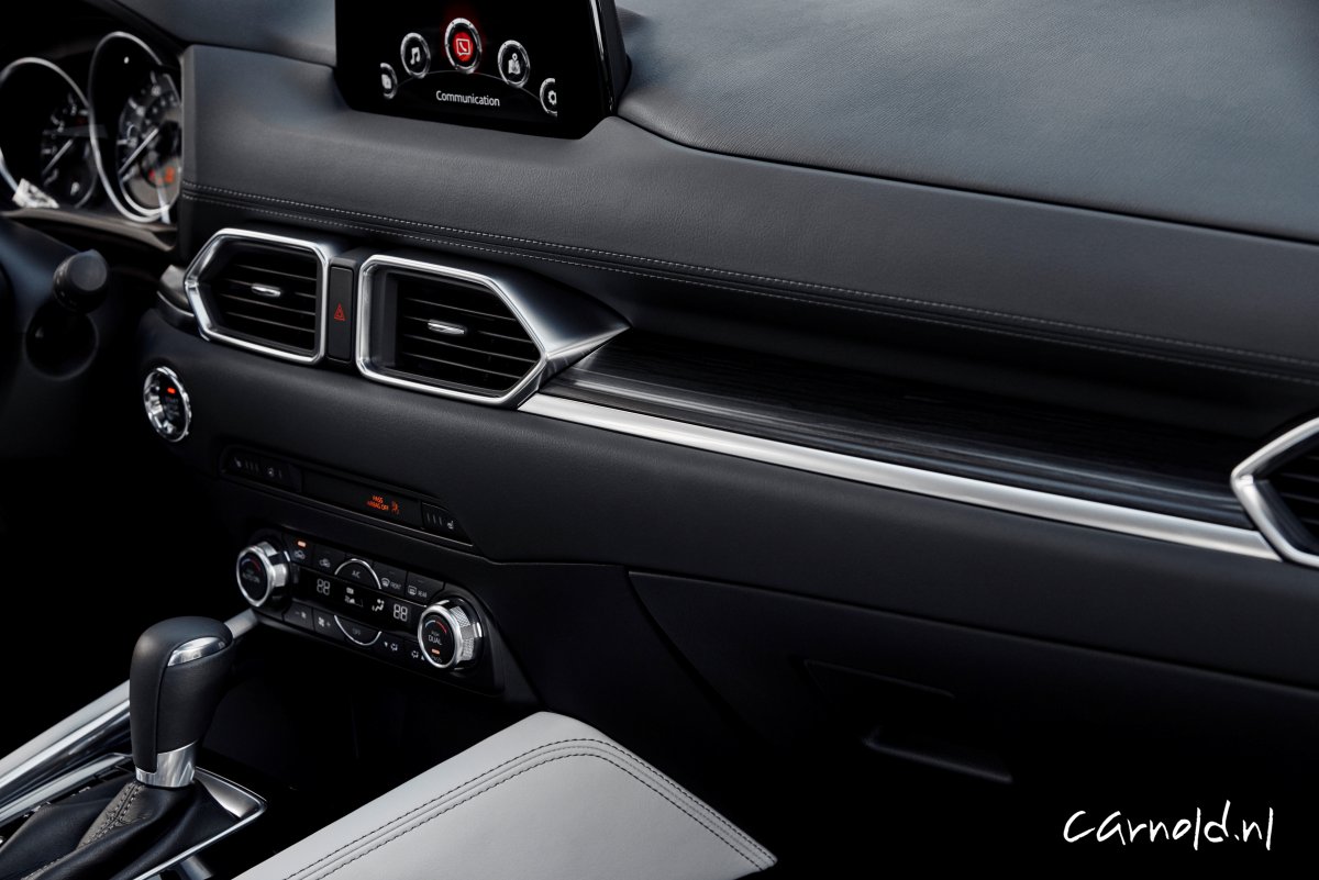 Op interieurgebied heeft Mazda zichzelf overtroffen: zowel op het gebied van materiaalgebruik, afwerking, maar vooral op het gebied van design. Je zou zo in de foto willen stappen om van dit prachtige interieur te genieten. Alle bedieningselementen zijn op de bestuurder gericht, uniek in dit marktsegment is de full-color head-up display. Mazda heeft de positie van de versnellingspook 60 millimeter naar boven gebracht om de feeling met de auto verder te vergroten – Jinba Ittai in optima forma. Doordat de A-stijlen verder naar achter zijn geplaatst, heeft de bestuurder een beter zicht naar buiten.