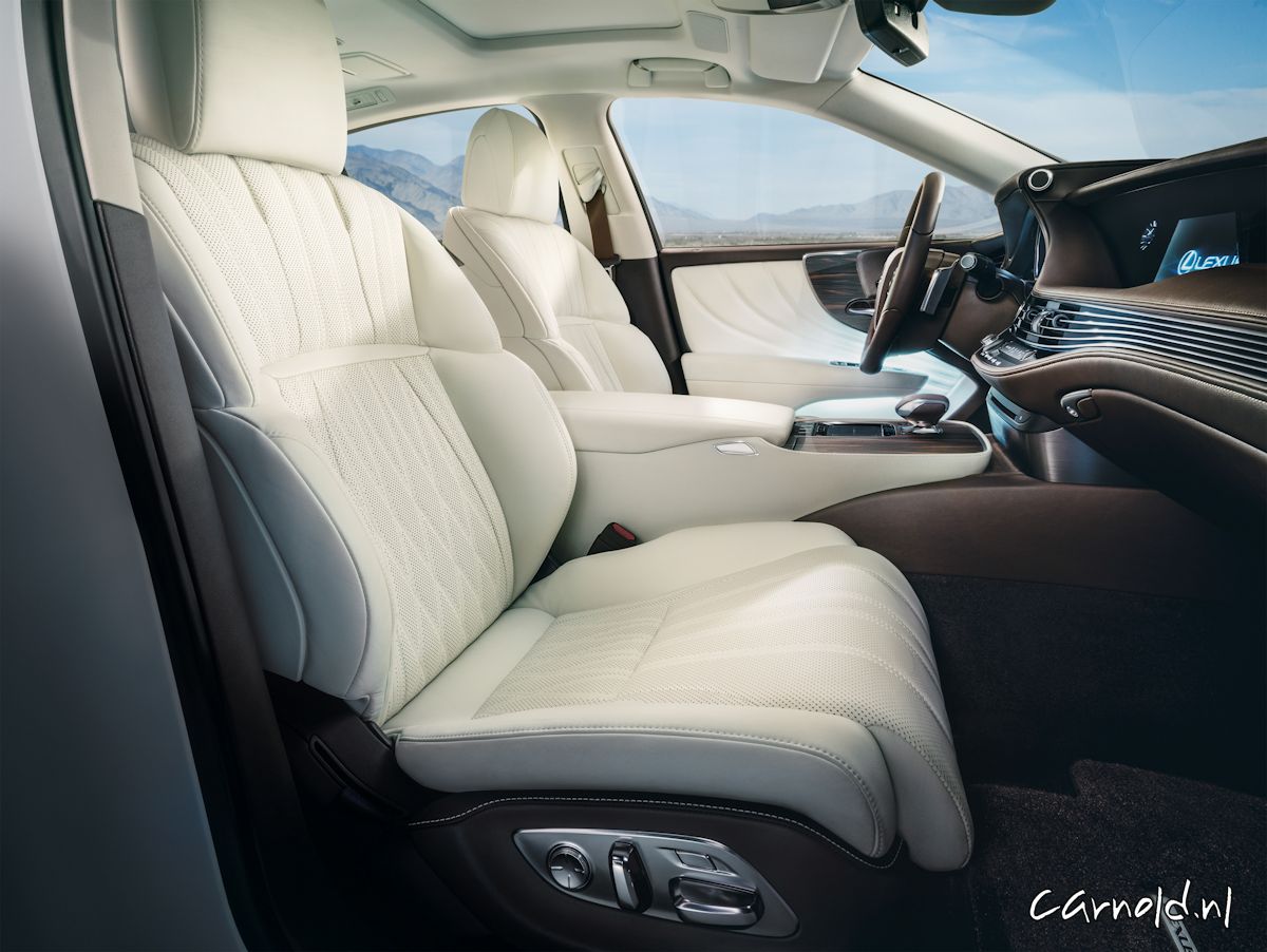The place to be is natuurlijk het interieur, en daarvan hebben de Lexus-designers iet prachtigs gemaakt. Het dashboard is een lust voor het oog, en echt uniek in autoland, Leer, hout, chroom all over the place, en in de juiste verhoudingen. De houten sierlijst die over de volle breedte loopt is ingelegd met verchroomde strips, de welving zie je terug in het exterieur van de LS. Omotenashi, gastvrijheid, is het sleutelwoord in het interieur. Onmiskenbaar Japans, onmiskenbaar topkwaliteit. Beide voorstoelen hebben 28(!) instelmogelijkheden, beschikken over stoelverwarming, ventilatie en een massagefunctie. De achterbank kan optioneel worden uitgerust met Ottoman stoelen met Shiatsu massage, voetsteunen en verstelbare rugleuningen.