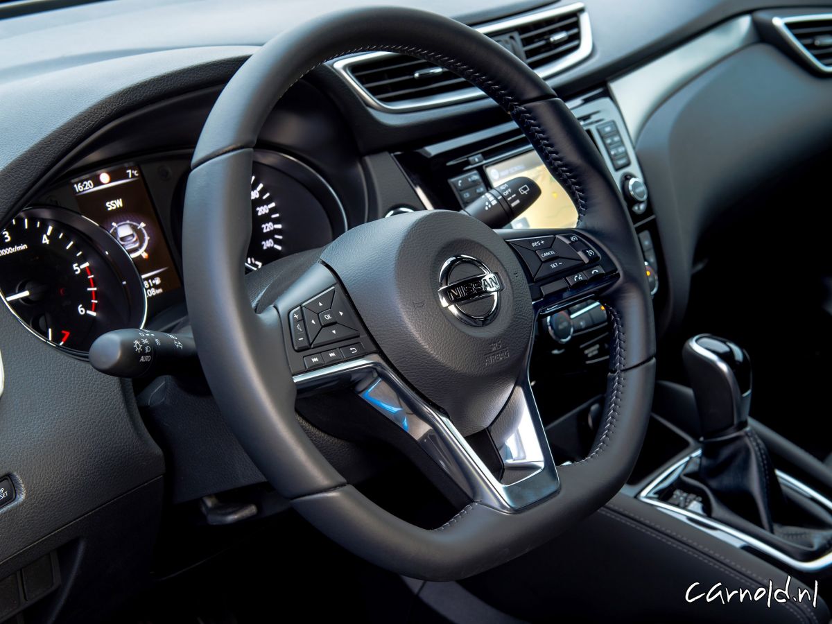 In het interieur draait het om touch and feel, en daarom kreeg de Qashqai fraaiere materialen en werd de maatvoering en afwerkingskwaliteit verder verbeterd. Nissan introduceert voor de Qashqai een nieuwe topuitvoering: de Tekna+. Die krijgt stoelbekleding van Nappa-leer en 3-D stiksels mee. Mooi hoor.