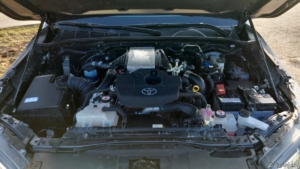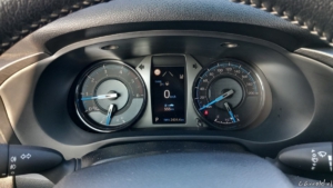 In zijn huidige vorm voldoet de auto ook prima als reisauto, zoals tijdens deze test blijkt. Op constante snelheid is de motor mooi stil en is het veer- en rijcomfort prima. Alleen het windgeluid en de algehele geluidsdruk is iets hoger, maar daar staat de fijne zitpositie en de voertuigstabiliteit tegenover. En dat maakt de Hilux best een fijne auto voor de langere afstand. Bij het afhalen werd gezegd dat het een fijne onthaast-auto is. Iets dat ik interpreteerde als ‘het is geen snelle auto’, maar dat is niet waar. Met 204 pk en 500 Nm koppel (de handgeschakelde versie heeft 420 Nm) is hij vlot genoeg, ook als de snelheden op de Autobahn oplopen en er een vlotte inhaalactie ingezet wordt. De automaat houdt het motortoerental bij het accelereren tussen de 1.600 en 2.800 toeren, in dat gebied ligt het koppel op een constante 500 Nm. Deze aandrijflijn is overigens Toyota’s enige eigen mild-hybride, met een 48 Volt starter-generator die 20 pk en 65 Nm toevoegt. Dat zie je overigens niet terug in het systeemvermogen, de ISG is vooral bedoeld om in de lage toerentallen het turbogat in te vullen. In de praktijk merk je nagenoeg niets van deze aanvulling – temeer omdat het motorkoppel van de 2.8 diesel zo overweldigend is. En in het verbruik zie je het ook niet terug, dat ligt op 1 op 10 – een direct gevolg van de stroomlijn.