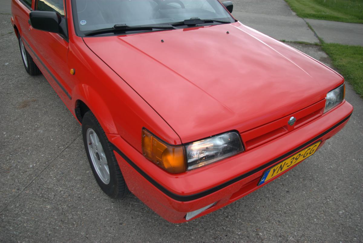 Het plaatwerk heeft iets meer tijd gekost dan gepland, maar omdat dit klussen zijn die je in één keer goed moet doen, heb ik de schadehersteller wat extra tijd gegund – het moet tenslotte geen haastklus worden, nietwaar? De motorkap stond aanvankelijk niet op de begroting, maar ik heb besloten om ‘m toch te laten spuiten vanwege de vele kleine steenslagplekjes. Na een kleine drie weken (de Sunny is tussen de bedrijven door gedaan) was de Sunny klaar. En het resultaat overtrof mijn verwachtingen volledig: er stond gewoon een nieuwe Nissan Sunny! Het lakwerk is poepiestrak, en de voorbumper zit er weer helemaal recht op.