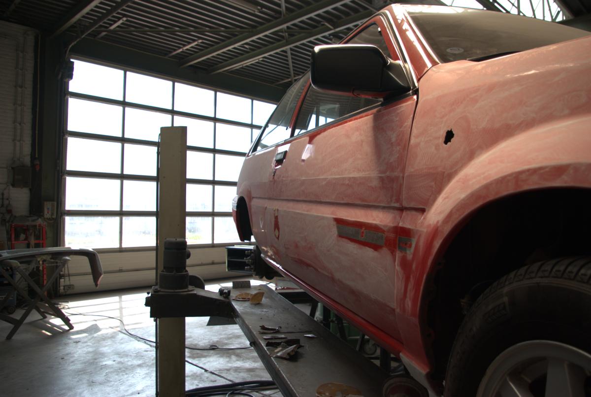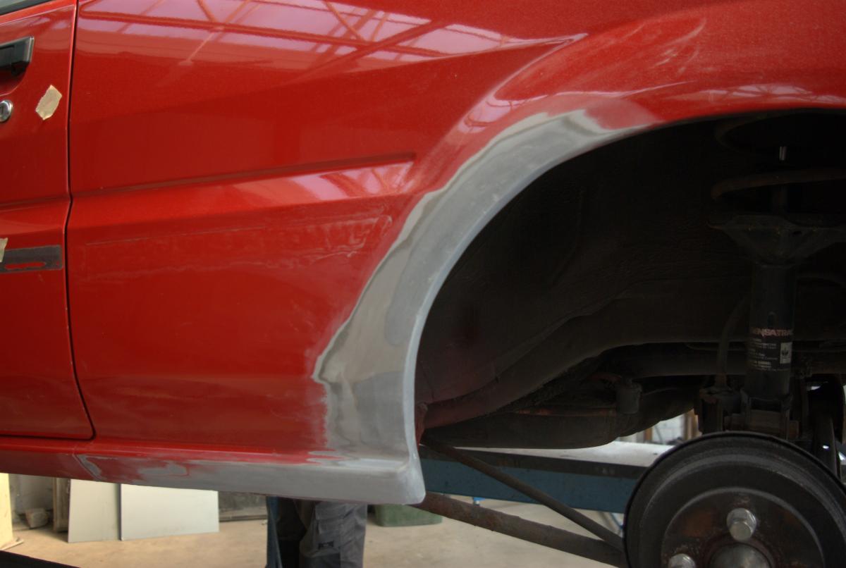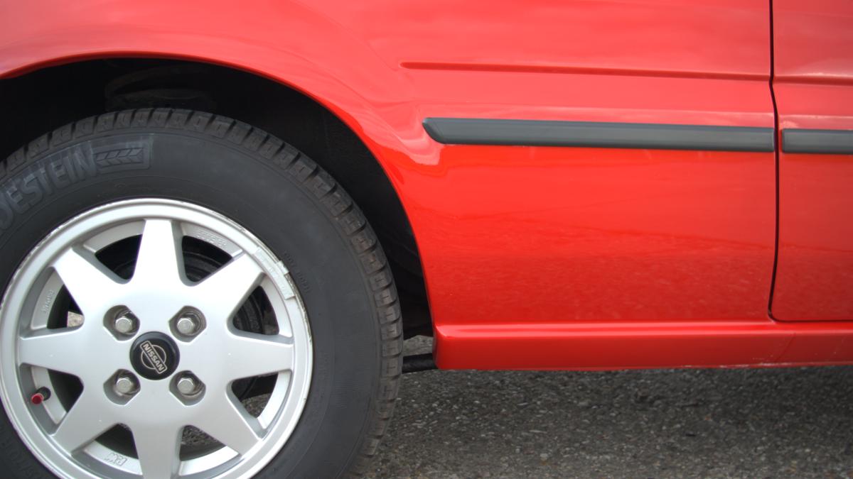 Het is een hele tijd terug sinds ik voor het laatst iets over mijn Sunny gepost heb. Dat komt vooral omdat er in de tussenliggende tijd weinig aan de Sunny gedaan is, hij heeft weliswaar de nodige kilometers gemaakt, maar ingrijpende technische verrichtingen zijn er niet geweest. Tot drie weken terug…Voor mijn bedrijf wilde ik reclamematerialen / autobelettering laten maken bij Autoschade Van Krimpen, en het leek me geen gek plan om eens een offerte op te vragen om de Sunny goed op te kalefateren. Zo her en der zaten er een paar nare plekjes, met name ter hoogte van de achterste wielkasten. In de rand zaten roestblaasjes, aan de linkerzijde zelfs een gat.
