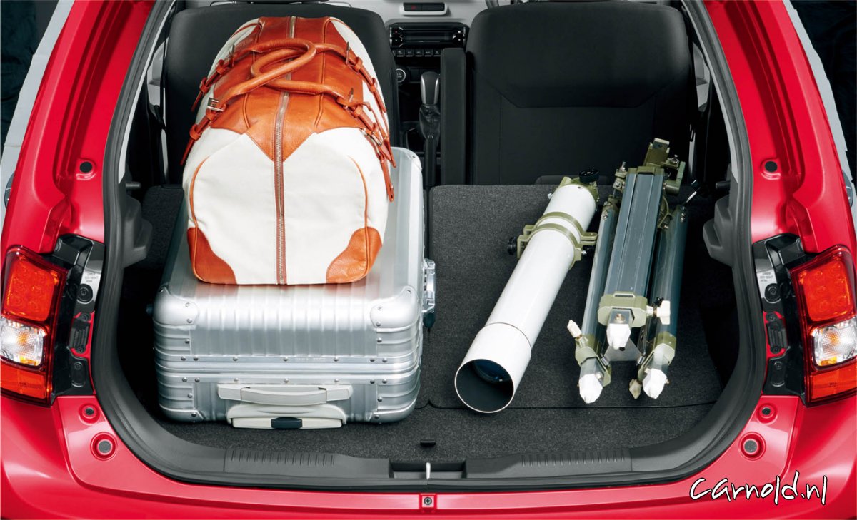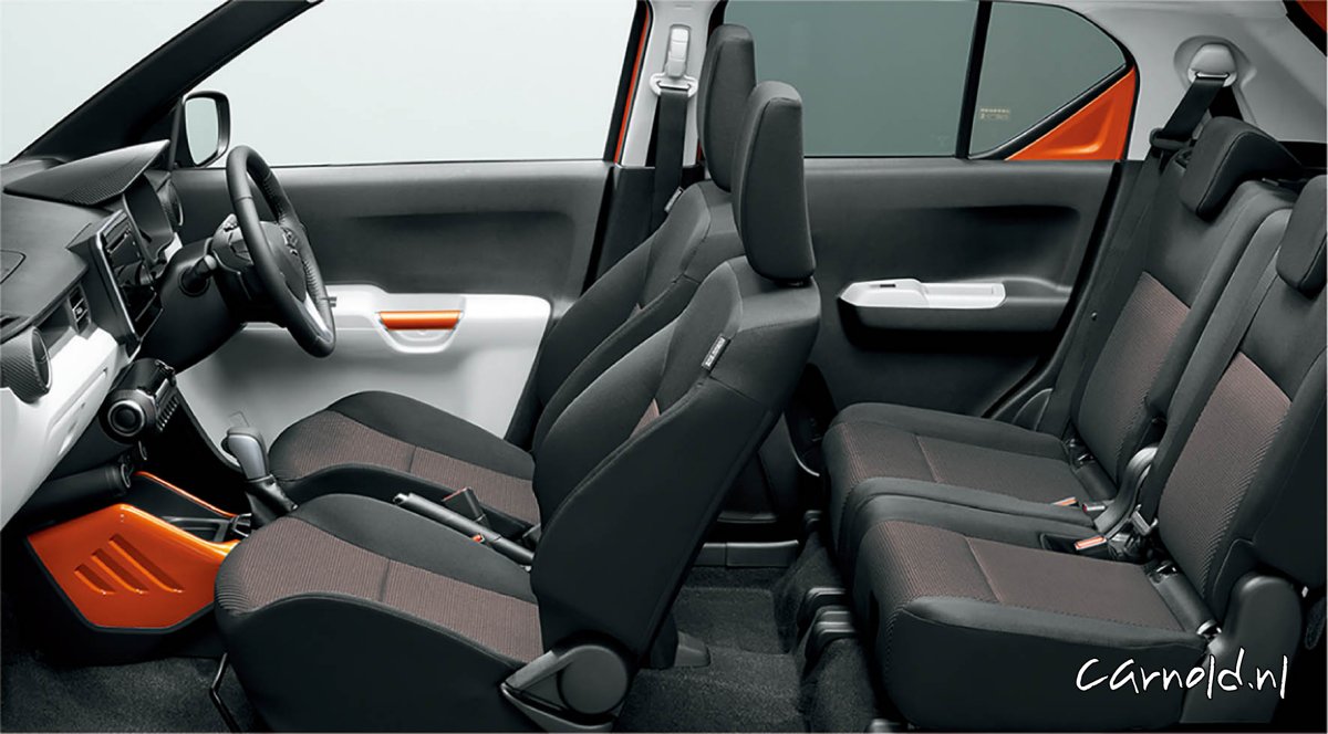 Het interieur mag er ook zijn, alhoewel we nog niet weten welke uitrustingsniveaus er komen en wat de uitrusting allemaal omvat. Waarschijnlijk tonen de interieurfoto’s de Ignis in het hoogste uitrustingsniveau, met een automatische climate-control, een touchscreen infotainment systeem en een groot display in het instrumentarium. Het stuurwiel zal veel Suzuki-rijders vast bekend voorkomen. Het interieur is ook behoorlijk functioneel, met de achterbank neergeklap krijg je een vlakke laadvloer.