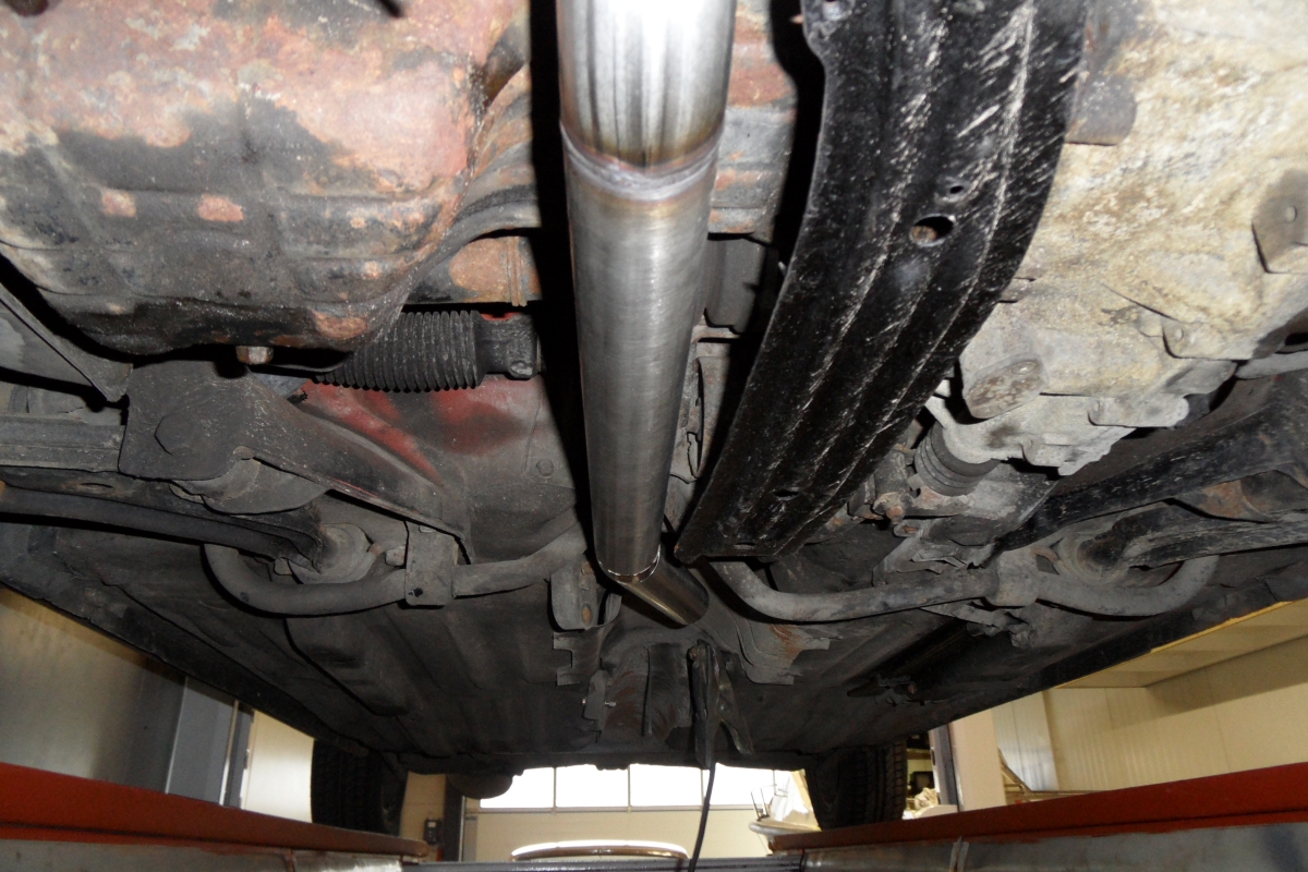 Dezelfde middag trof ik een kennis terwijl ik het gat in de uitlaat aan het dichten was. Hij vertelde me dat een familielid ook regelmatig RVS uitlaatsystemen voor auto’s en motorfietsen maakte. Ik ben gaan kijken en kwam zo terecht op de Facebookpagina van RdJ techniek, de firma in kwestie. Ik ben meteen langsgereden en heb wat werk bekeken. Dat was overtuigend genoeg om een offerte te vragen, en ik ben blij dat ik dat gedaan heb. Voor de helft van de prijs kon Robin een custom-made RVS systeem onder de Sunny installeren. Robin beschikt over een flinke brug, alle nodige apparatuur en een flinke dosis lasvaardigheid. In één zaterdag werd het systeem op de auto op maat gemaakt.